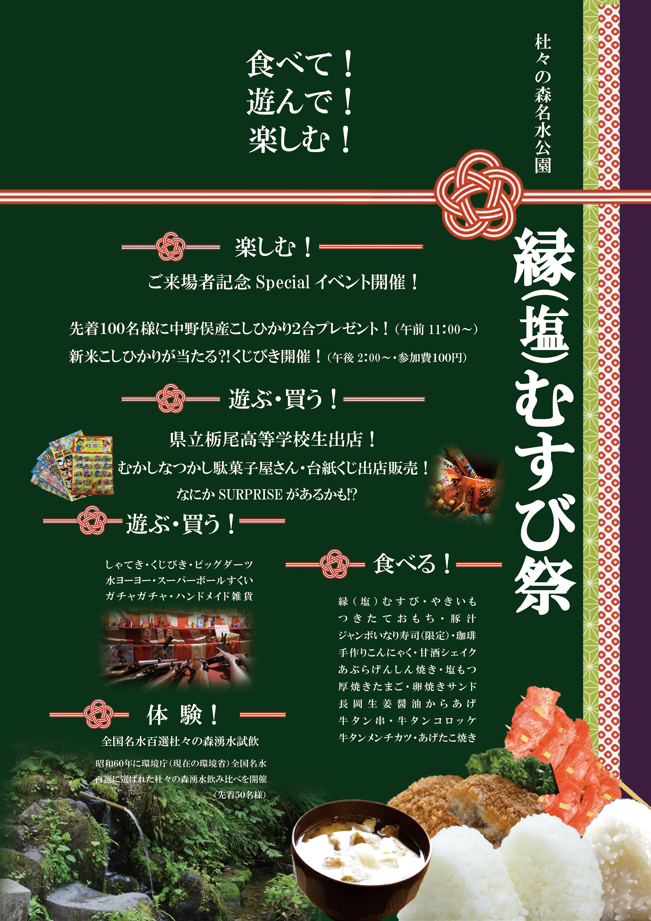 昭和60年に環境庁(現在の環境省)全国名水百選に選ばれた杜々の森湧水は、冷たく澄んだ水質のよさが人気を呼んで、市内だけでなく市外県外からも訪れる人が絶えません。この水は、飲用水や灌漑用水など命の水として、村人の生活を支えてきました。大切な湧水が、